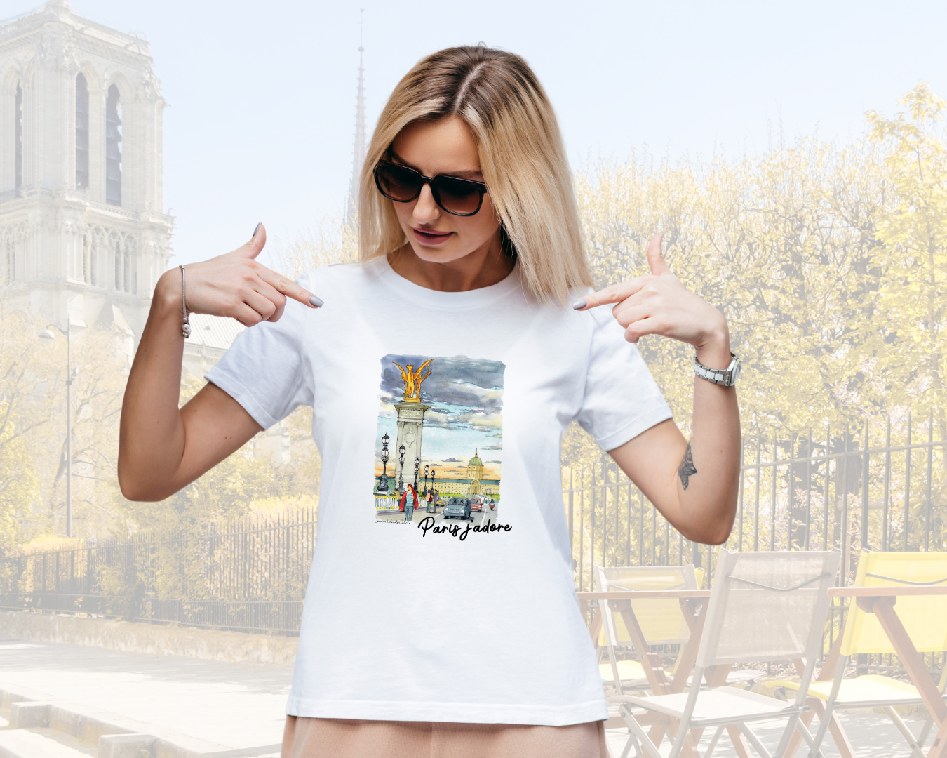 El Puente Alejandro III y los Inválidos , inmortalizados en esta acuarela, capturan la grandeza arquitectónica, la historia militar y la Iglesia del Domo dónde descansan los restos mortales de Napoleón I. Una acuarela que rinde homenaje a la conexión única de estos monumentos.